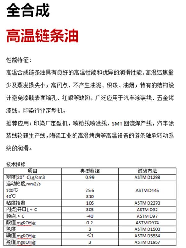 廈門(mén)威馬工貿(mào)有限公司位于美麗的花園城市-廈門(mén)市同安區(qū),公司專營(yíng)合成高溫油脂系列產(chǎn)品。產(chǎn)品分為:高溫鏈條油、高溫潤(rùn)滑脂、高低溫潤(rùn)滑脂等系列油品。廣泛應(yīng)用于:定型機(jī)、噴涂/噴粉、巖棉等高溫潤(rùn)滑設(shè)備,本品無(wú)煙,無(wú)殘?jiān)瑢儆谌铣筛邷赜拖盗校杉臉釉囉茫L(zhǎng)期服務(wù)全國(guó)客戶。